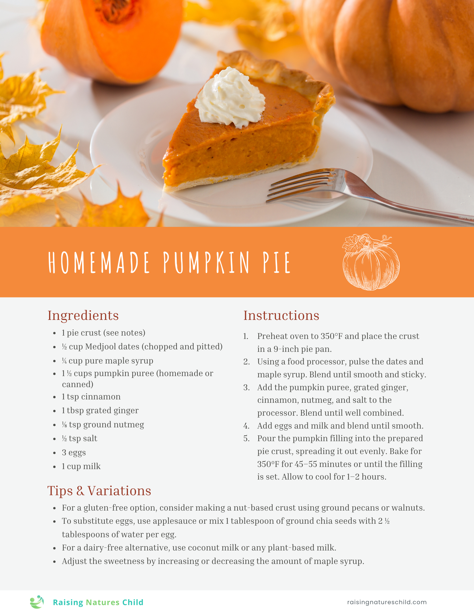 This cozy pumpkin pie is filled with warm ginger, maple-sweetened dates, and all the comforting flavours of fall.
