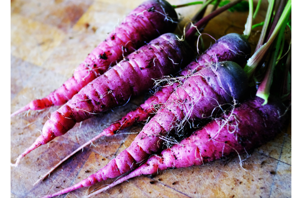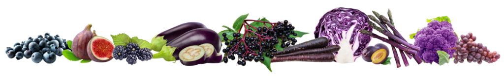 Examples: blueberries, figs, blackberries, eggplant, elderberries, blue carrots, red and purple cabbage, plums, purple asparagus, purple cauliflower, and purple grapes.