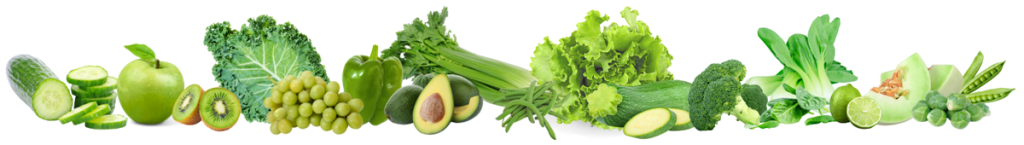 Examples: cucumbers, green apples, kiwi, kale, green grapes, green bell peppers, avocados, celery, green beans, lettuce, zucchini, broccoli, spinach, bok choy, limes, honeydew melon, Brussels sprouts, and snow peas.