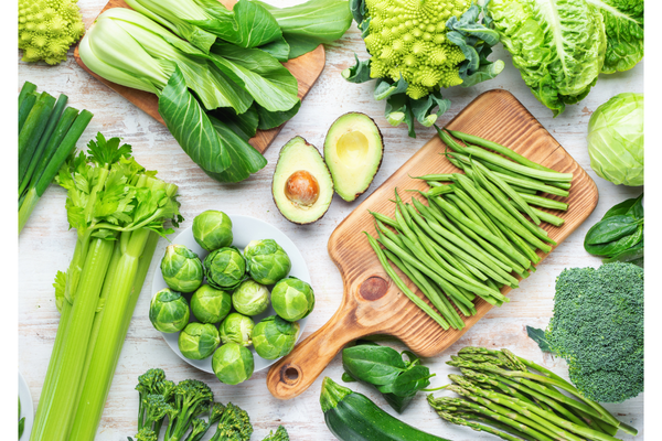 Green fruits and vegetables are rich in vitamins, minerals, and phytonutrients, like chlorophyll, which helps with detoxification, supporting blood flow, and improving energy levels. Many green foods, like kale and spinach, contain high levels of vitamin K, which support bone health and proper blood clotting.