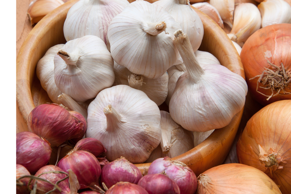 Brown and white fruits and vegetables are rich in antioxidants, fibre, and phytonutrients, which support the digestive and immune systems. Allicin, a compound found in garlic, has antimicrobial and anti-inflammatory