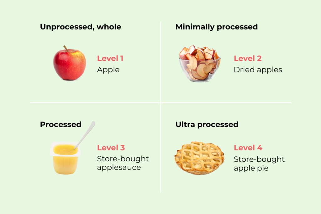 - Unprocessed: an apple picked straight from the tree, whole and intact.